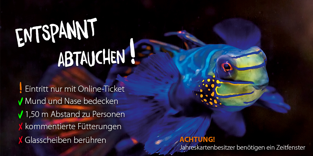 Ein Besuch im Aquarium ist – analog zu Zoo und Tierpark – nur mit einem vorab online erworbenen, an eine bestimmte Besuchszeit gebundenen Ticket (erhältlich unter www.aquarium-berlin.de/tickets) möglich. Auch Jahreskartenbesitzer müssen sich vor ihrem Besuch online anmelden (ebenfalls unter dem obenstehenden Link). Vor Ort werden keine regulären Tageskassen geöffnet haben, Jahreskarten können wie gewohnt am Zoo-Eingang Löwentor erworben und verlängert werden. Grundsätzlich ist ein Mindestabstand von 1,5 m zu anderen Personen zu halten und die Beckenscheiben sollen möglichst nicht berührt werden. Aquariumsbesucher müssen zudem (ab einem Alter von 6 Jahren) eine Mund-Nasen-Bedeckung tragen. Kommentierte Fütterungen können zunächst nicht stattfinden, das Café im Aquarium hat ab morgen ebenfalls geöffnet.