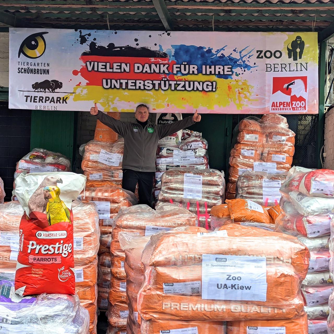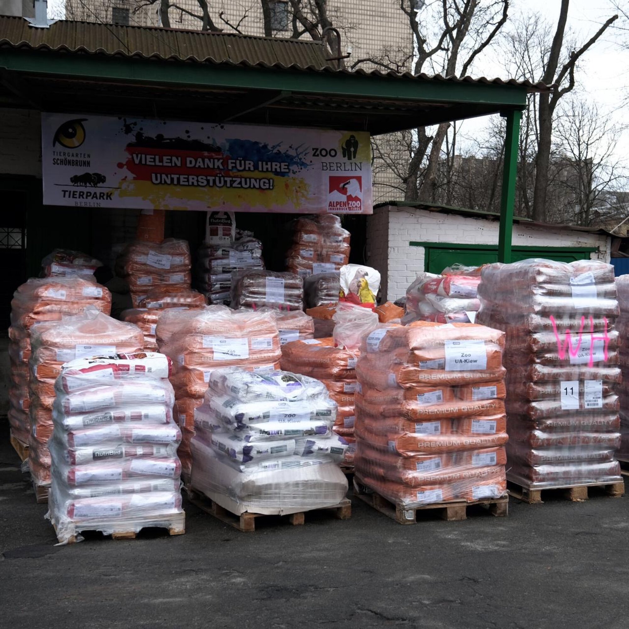 Auch in diesem Jahr haben wir Futterspenden in Höhe von etwa 30.000 Euro nach Kiew bringen können. Die Futtermittel sind inzwischen gut im Zoo Kiew angekommen. Mehr als 18 Tonnen Futtermittel werden dabei helfen, die Versorgung der etwa 4.000 Tiere sicherzustellen und die wirtschaftlichen Herausforderungen zu reduzieren, mit denen der Zoo Kyiv infolge der anhaltenden Konflikte konfrontiert ist. Ein herzliches Dankeschön noch einmal an alle Spender*innen, die nach wie vor für die Ukraine spenden und damit erneut einen Transport ermöglicht haben. Danke auch an den Tiergarten Schönbrunn und den Alpenzoo Innsbruck für die Zusammenarbeit.