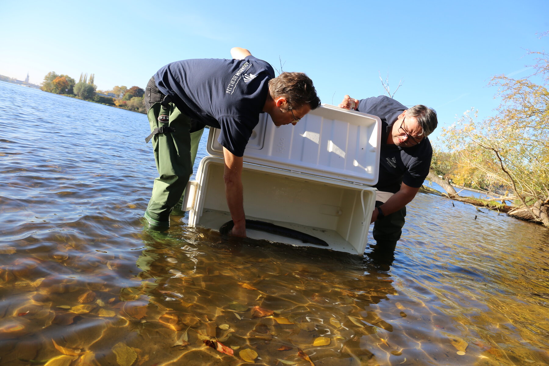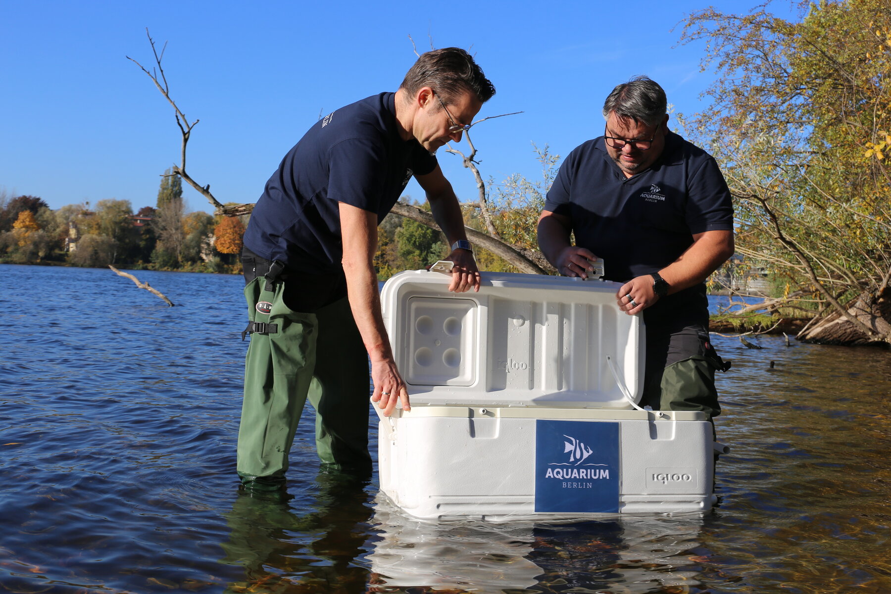 Das geheime Leben der Aale: Sie verbringen die meiste Zeit in Seen und Flüssen, am Ende ihres Lebens wandern jedoch alle Aale zur Fortpflanzung in die Sargassosee, ein Meeresgebiet im Atlantik östlich Floridas. Nun werden zwei Aale aus dem Aquarium Berlin wieder in den natürlichen Lebensraum zurückgeführt, sodass sie ihre letzte Reise in den Atlantik antreten können. „Icke und Dette sind 2001 als verletzte Jungtiere zu uns ins Aquarium gekommen. Nach Rücksprache mit den Behörden haben wir uns der beiden angenommen. Inzwischen haben sie sich zu wirklich stattlichen Tieren entwickelt und messen nun rund einen Meter“, erklärt Revierleiter im Aquarium Marco Hasselmann. Bereits seit ein paar Wochen hat das Aquarium-Team die Zurückführung von Icke und Dette vorbereitet. „Wir haben Wassertemperatur und pH-Wert sukzessive an die Bedingungen in der Havel angepasst, sodass die beiden optimal auf ihre Reise vorbereitet sind. Da sie zudem wohlgenährt und an natürliches Futter gewöhnt sind, sind wir zuversichtlich, dass sie ihre Reise erfolgreich beenden werden“, ergänzt Hasselmann. Vermutlich werden die beiden sattgefressenen Aale sich direkt an den Grund der Havel begeben, sodass Angler aktuell keine Gefahr für Icke und Dette darstellen. Auf ihrer langen Wanderung in den Atlantik fressen die Tiere nicht – sie bilden ihre Verdauungsorgane, zugunsten der Ausbildung von Geschlechtsorganen, sogar zurück.
