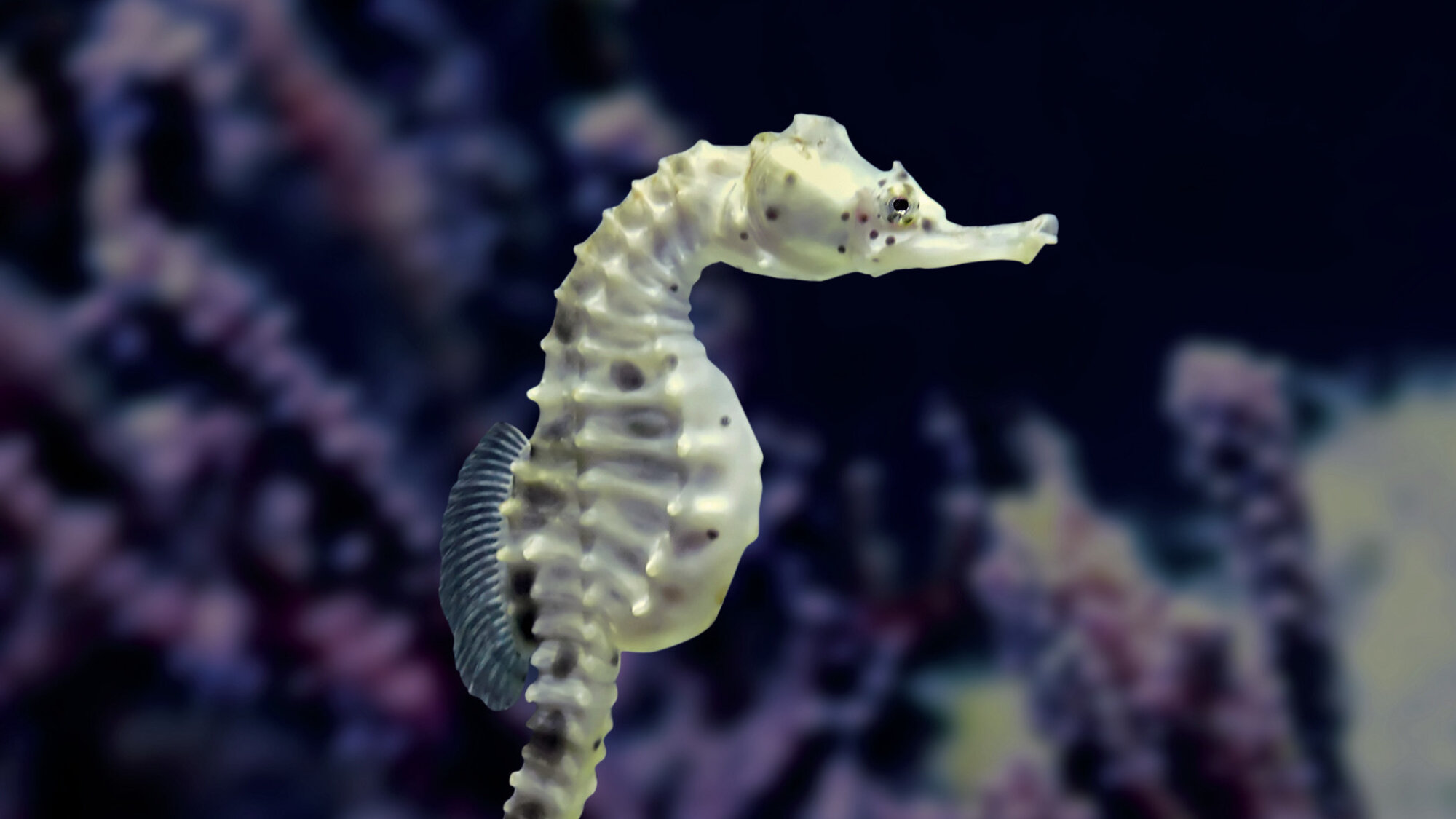 Dort leben sie in zwei bis einhundert Metern Tiefe – übrigens ein Leben lang mit ein und demselben Partner, wie alle Seepferdchen. Und wenn’s „gefunkt“ hat, bringt der Papa den Nachwuchs zur Welt. Ebenfalls typisch für alle Artgenossen.
