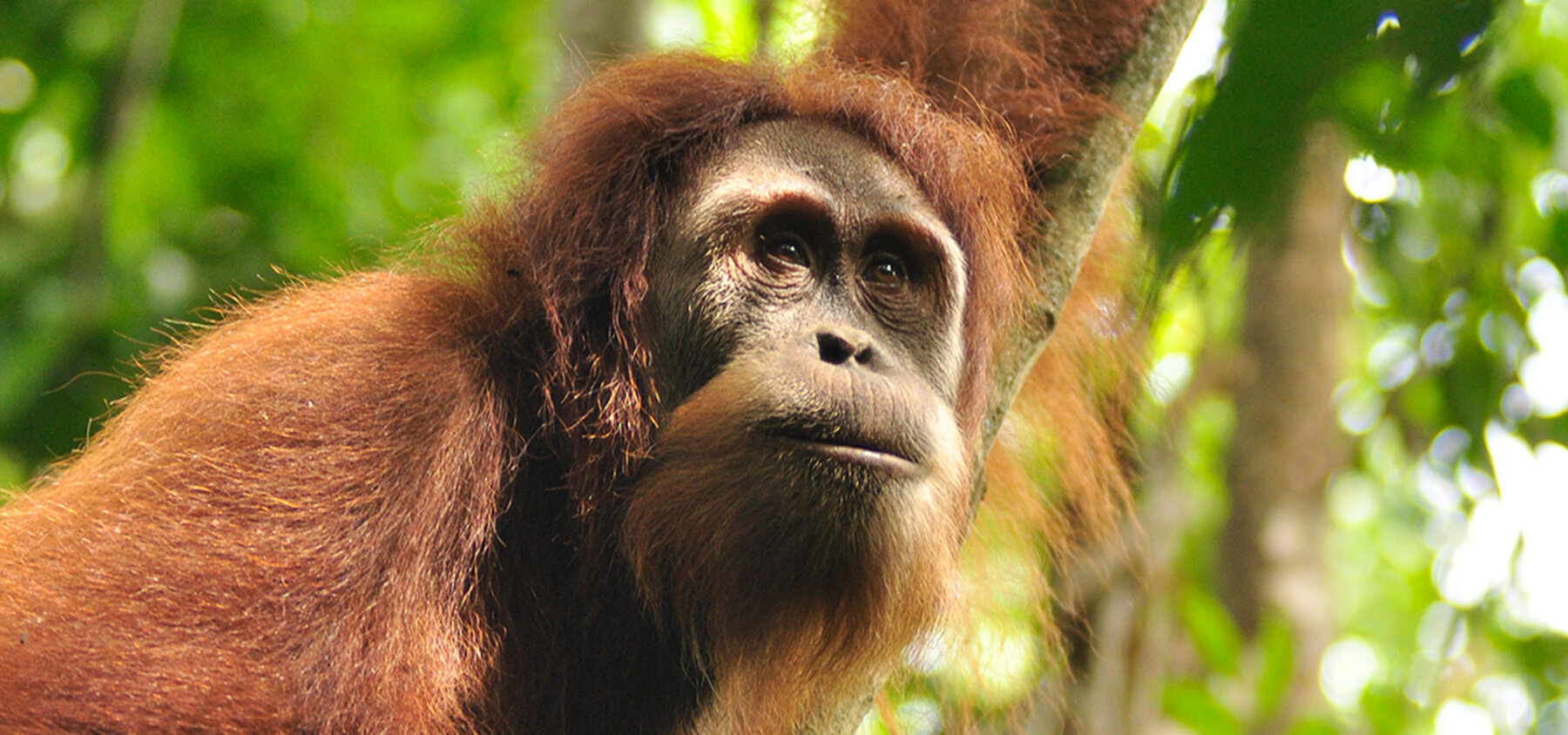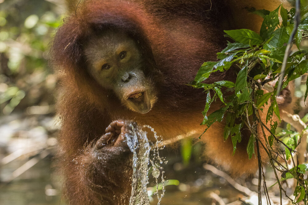 As their name suggests, Sumatran orangutans are found solely on the Indonesian island of Sumatra in the northern part of the island. Indonesia’s tropical forests are listed among the world’s designated biodiversity hotspots, and yet large swathes of Indonesian rainforest are being destroyed at a catastrophic pace. Since the early 1970s, the Frankfurt Zoological Society (FZS) has been working to reintroduce illegally captured orangutans into the wild. This project operates out of the FZS station on the edge of Bukit Tigapuluh National Park, which was declared a protected area in 1995. It is the only national park that is home to all the large mammals of Sumatra: the Sumatran elephant, Sumatran tiger, Malayan tapir, and Sumatran orangutan.